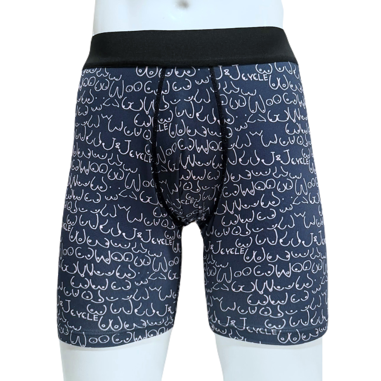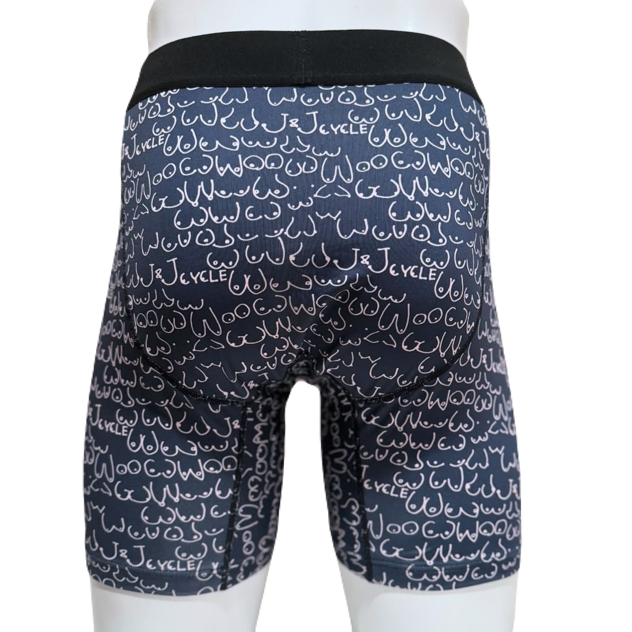 また、一般的なボクサーパンツと比べて、CUP部の幅を絞りこみ、中心接ぎを長めに設定する事で高さを確保。