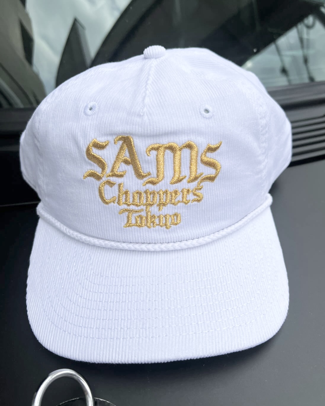 SAMS CHOPPERS ロゴを刺繍したキャップ。