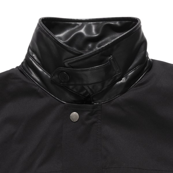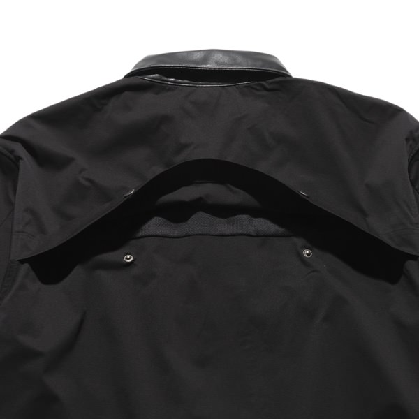 襟は合成レザーで切り替え、両肩と背中にはフラップ式のベンチレーションが設けられておりスナップボタンで開閉が可能。