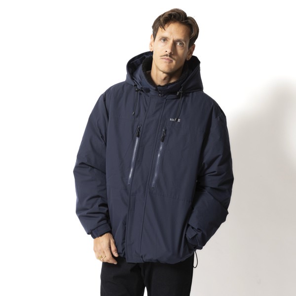 環境負荷の低い原料を使用し、ドライな質感で透湿・速乾・耐摩耗・ストレッチ・撥水・耐久性の機能を併せ持つROARK独自開発ファブリック”ROAMFREE FLEX”と、太陽や人体から放射される遠赤外線を特殊なナノ微粒子により、熱エネルギーに変換し発熱することで暖めるROARK独自の高機能中綿”THERMALOFT”を採用。