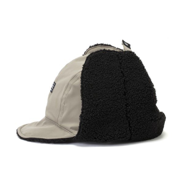 あご下でバックルをとめて着用すれば、程良いボリュームのボアフリースを使用した耳当てに顔が包まれ、抜群の防寒性を発揮してくれます。
