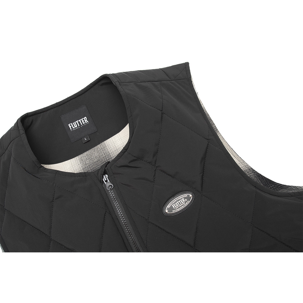 フィルムを採用した、中綿入りノンカラータイプのヒートベストが登場。