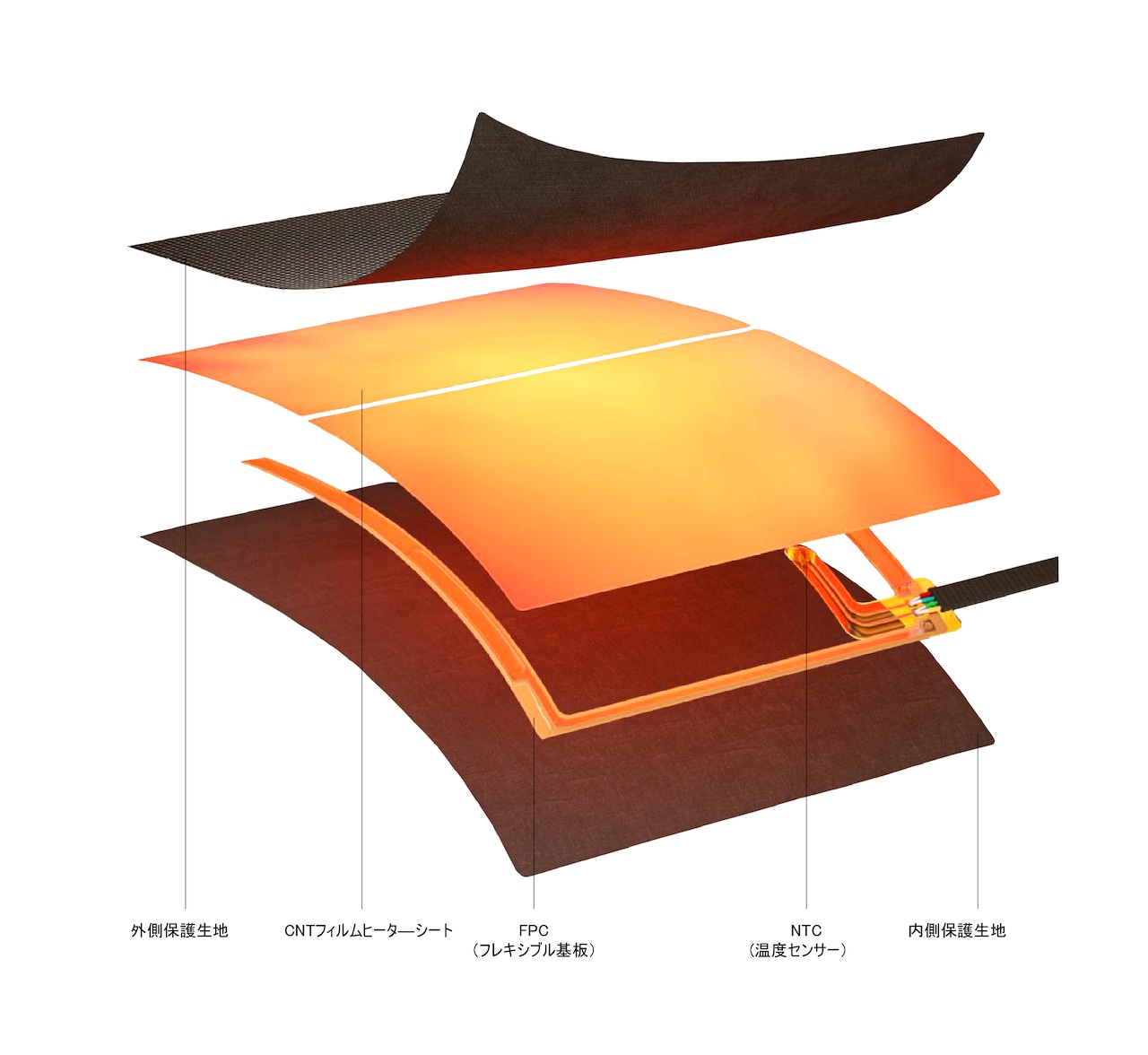 両胸から背中にかけてインサートされたCNTフィルムは、