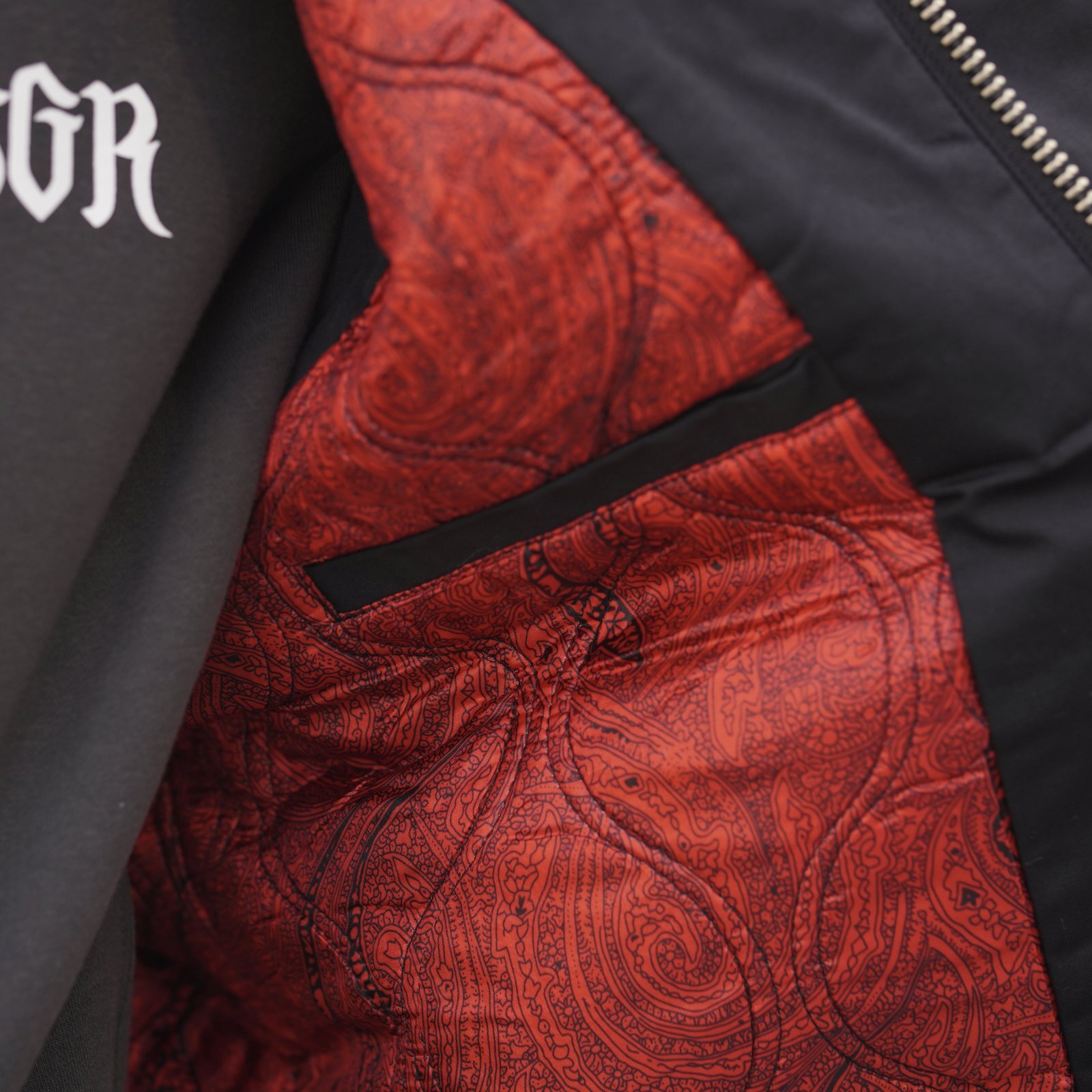 裏地に施されたペイズリー柄は硬派な外観とは対照的な印象を与え、センスを引き立ててくれます。