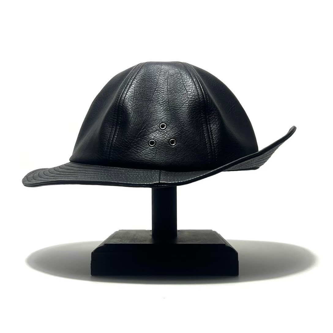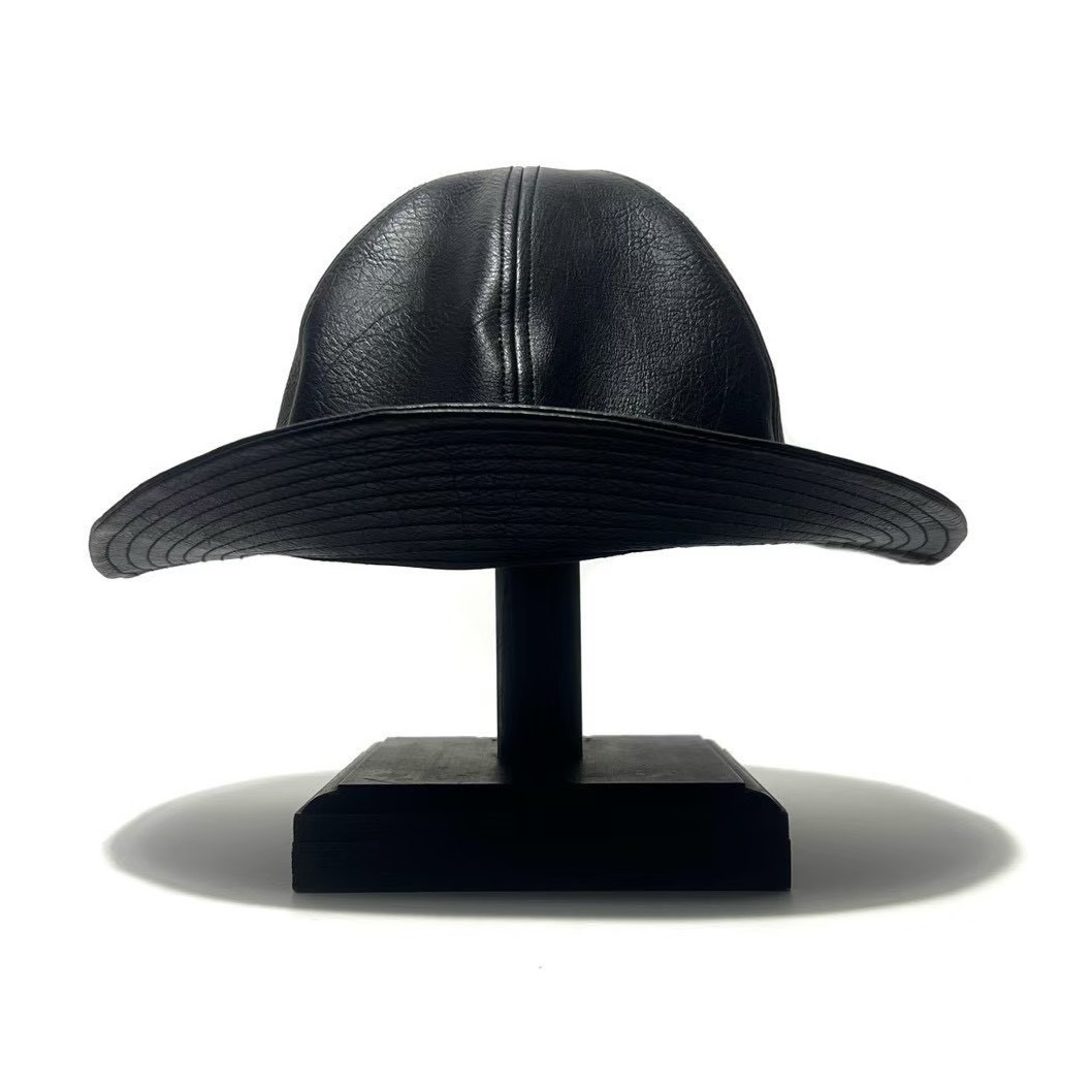 上質なシボ感のあるフェイクレザーを使用した、無骨なハット。