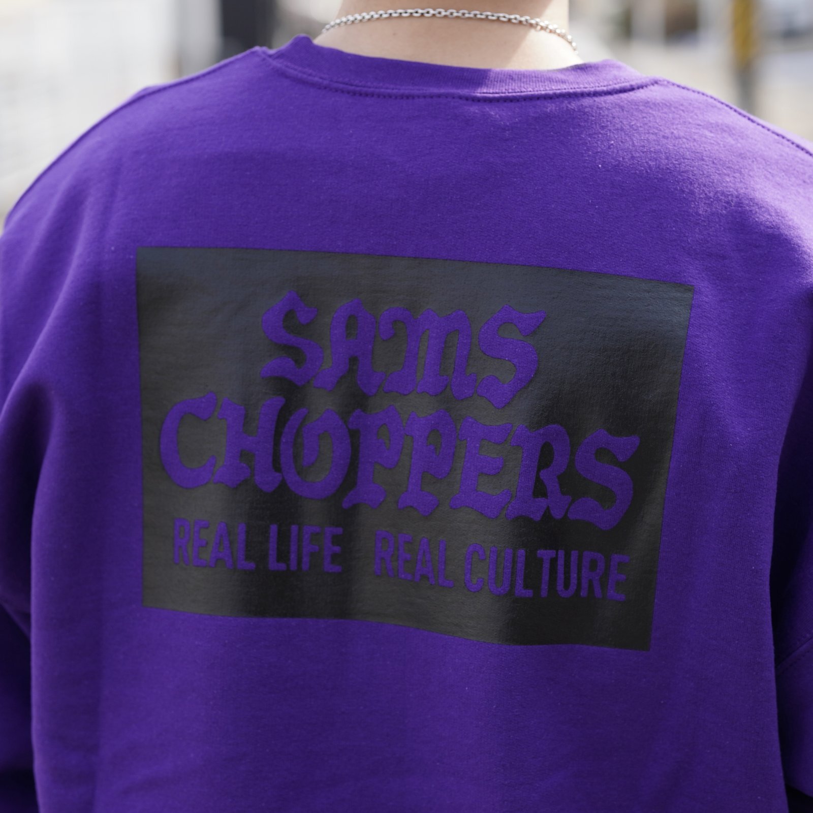 左胸とバックに Sams Choppers のプリントを配したクルースウェット。
