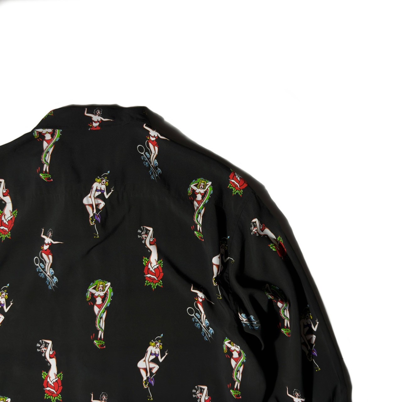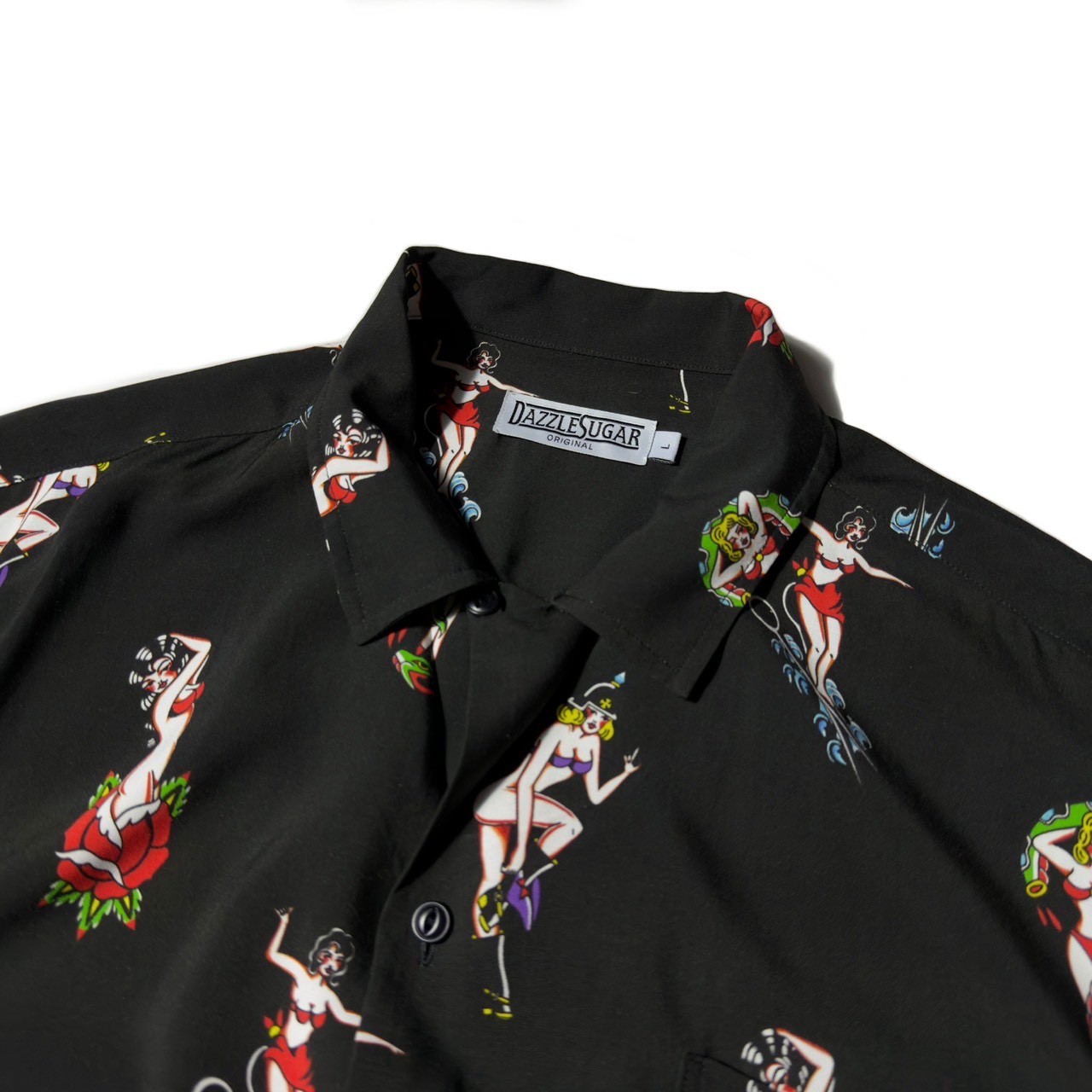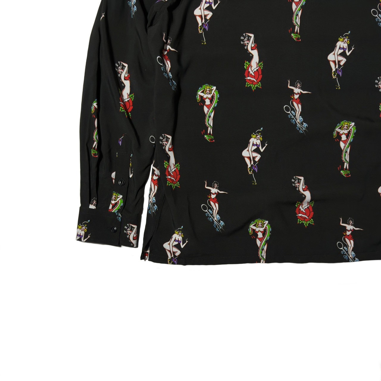 艶やかで妖艶なピンナップガールを全面に落とし込んだ総柄仕様。